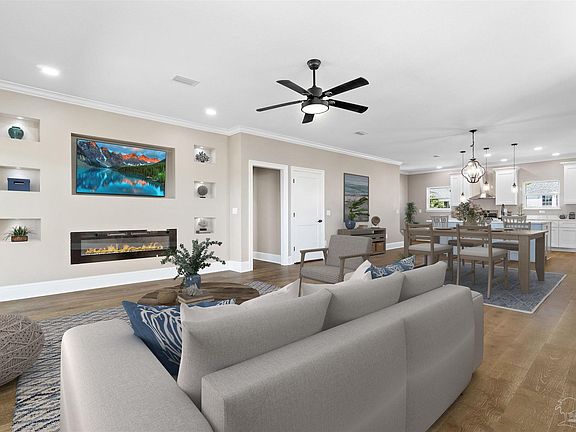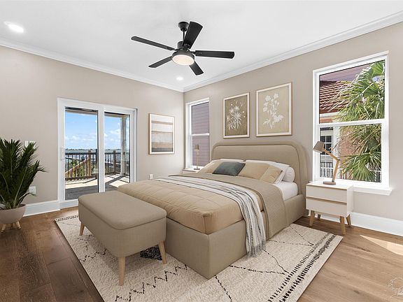This stunning, brand-new custom-built waterfront home is located in a desired gated community. With direct access to international waters via your own private boat dock, this 4-bedroom, 5-bathroom home is perfect for those who have always dreamed of living on the water in Florida. The spacious open-concept design features a chef-inspired kitchen with sleek quartz countertops, a gas stove cooktop, high-end stainless steel appliances, and custom cabinetry with soft-close drawers and ample storage. Approved Pool plans available! The kitchen seamlessly flows into the living room, which boasts an electric fireplace and breathtaking water views. Step outside onto the large covered patio, complete with ceiling fans, for the perfect spot to relax while enjoying the serene surroundings, or take in even more stunning views from the second balcony. The luxurious primary suite offers two walk-in closets and a spa-like en suite bathroom with a gorgeous walk-in tile shower and dual shower heads. The home’s lower floor features another covered patio that overlooks a fire pit and palm trees, creating an ideal space for outdoor living. The oversized 2-car garage provides space for up to 4 vehicles, plus additional guest parking out-front. With hurricane-grade windows throughout and 6-inch walls for extra insulation, this home is built for both durability and energy efficiency. Situated in a secure, gated community with expansive views of the Santa Rosa Sound and the undeveloped Santa Rosa Island, this waterfront gem offers the perfect combination of privacy, luxury, and functionality. Don’t miss the chance to make this dream home your reality—schedule a tour today!