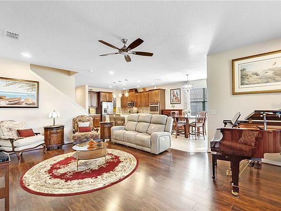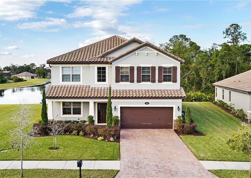 Live the DREAM in this exquisite home located in the RIVERFRONT community of Riviera Bella! This 2 story home boasts over 3,600 square feet of living space with 5 bedrooms and 4 full bathrooms and a 3 car tandem garage - ideal for storing a boat and trailer. The open floor plan creates a great flow for entertaining. The gourmet kitchen features luxurious cabinets, quartz counter tops, an island with seating, GAS appliances and a large butlers pantry that looks out in the spacious family room. From the kitchen, escape outdoors onto the screened-in brick paver patio that is PERFECT for enjoying the home's water view. The upstairs hosts four bedrooms, including the owners suite featuring a walk-in closet and the master bathroom with a large walk-in glass shower, dual sinks and a garden tub. With the balcony overlooking the pond and the St. Johns river in the distance this suite is a perfect oasis for relaxing. Also located on the second floor is the bonus room, ideal for a game room or a home office. The laundry room has counter space for folding or storage and a built-in sink. This home is Energy Star 3.1 certified. The house has a 15 year transferable structural warranty. Riviera Bella is an upscale gated community with great amenities, including a clubhouse with media room, fitness center, pool, park, splash pad with playground plus another playground and a riverfront boat ramp. Great location just minutes from I4, shopping and restaurants. This property is also only a 10 minute drive from the SunRail station.