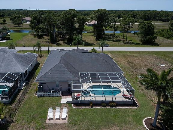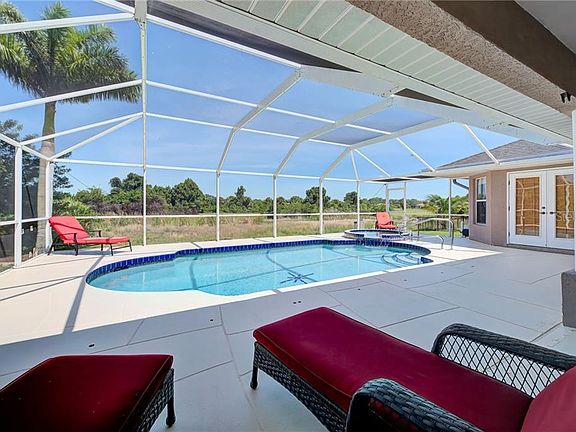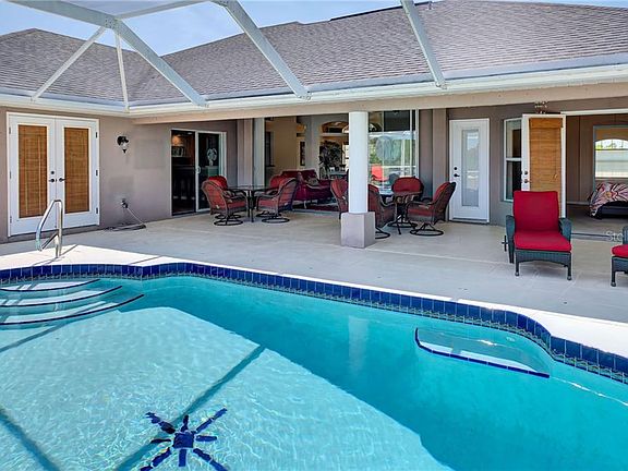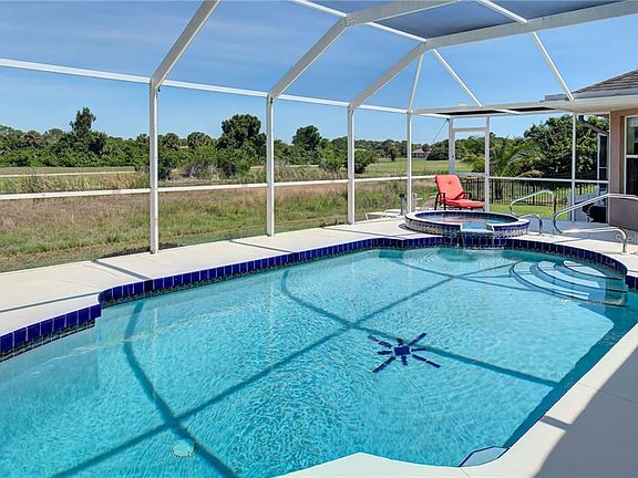 Fully FURNISHED and EQUIPPED. Exceptional 5 bedrooms, 4 bathrooms, large Pool and Jacuzzi Home with Pond and Golf Course View. This stunning GRAND home with mature landscaping, located in Rotonda is ideal for a large family or MULTI GENERATIONAL USE. It will provide YOU with every comfort and convenience you expect. There are two large mastersuites; one on each side of the house with direct pool area access. Both of them come with King Beds, matching nightstands, lamps, dresser and their en-suite bath with dual sinks, jetted tub and separate walk-in shower. The open and airy living with ceramic tile and wood flooring with stylish red leather sofas, coffee and side tables, comes with 8 ft. pocketing glass sliders to the extended pooldeck. An expansive chef's kitchen with lots of cabinet space, white appliances are just steps away from the formal dining room with tropical white table for a large party on one side and a large morning nook/dinette area on the other, complete with glass sliders to the outdoors. There are two nice size secondary bedrooms, both with Queen Sets, sharing a jack and Jill bathroom. Bedroom 5 comes with Daybed and desk and its own full bathroom, which is also serving as pool bath. Oversized pool area with large covered lanai where you have plenty of room for entertaining and taking in the sun is looking out to a natural pond and onto the Golf Course. You will enjoy swimming in this large pool and chill out in the Jacuzzi cascading into the pool. Both can be heated in cooler days. Outdoor dinings sets, loungers, BBA and pool bath. Extra pavered sitting area down on the water outside of the screened area. New Ruud 5 Ton 16 Seer AC System as of Sept. 2018! This unique home with almost 2400 SF under Air is located in a quiet conservation area in our Golfing Community Rotonda, embedded in 5 Golf Courses and a short drive away from 15 more. Rotonda is only 4 miles away from our 3 Barrier Islands (Boca Grande, Palm Island and Manasota Beach) with a total of 42 Miles of white sandy beaches, Shopping, Malls, Bars and Restaurants.