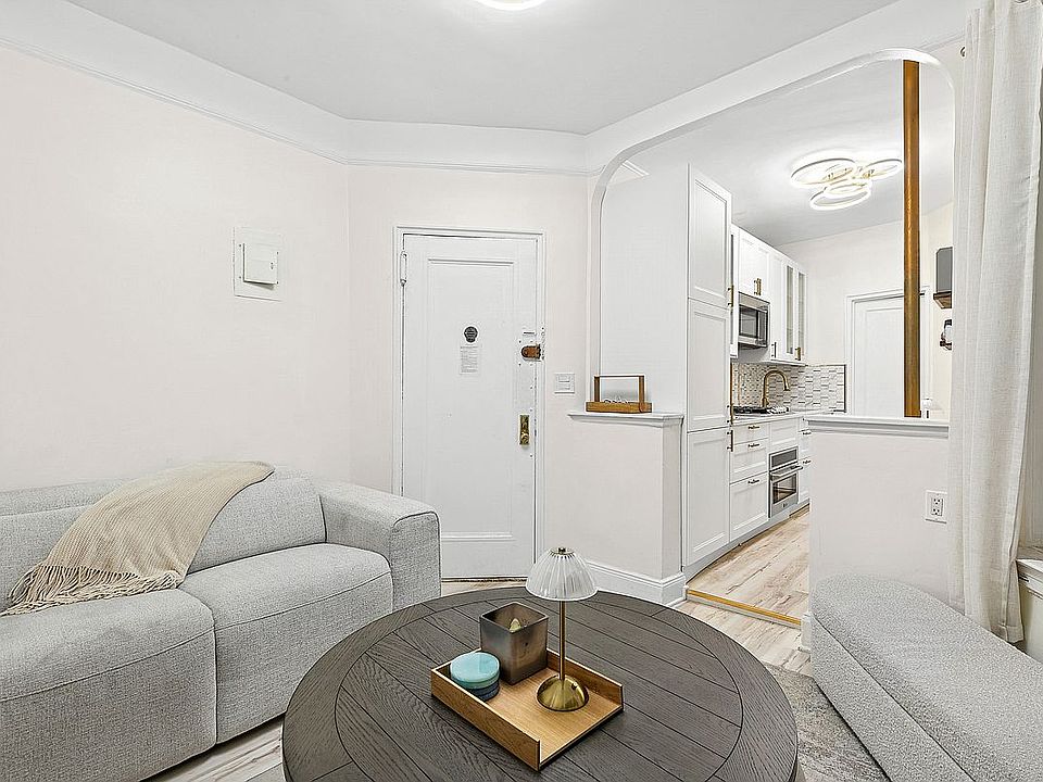 This bright and inviting home is an easy third-floor walk-up, offering a quiet, elevated retreat above the trees. The apartment has undergone a thorough renovation, featuring a brand-new kitchen with sleek custom cabinetry and an integrated refrigerator, perfectly designed for modern living. The open layout flows seamlessly for both everyday life and entertaining, with large windows that fill the space with natural light.