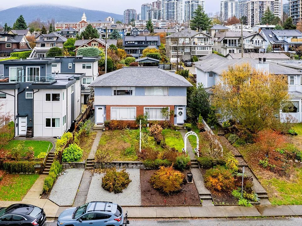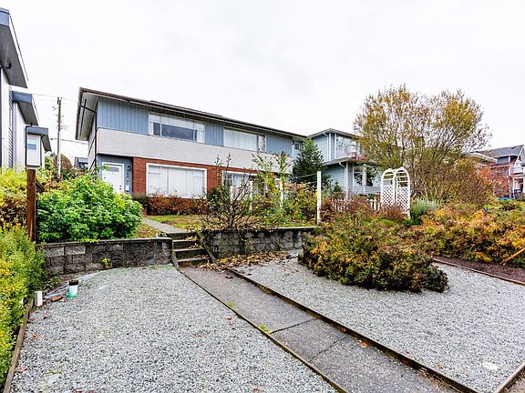 Fantastic opportunity to own this south facing side by side Lower Lonsdale duplex with post card water and downtown views! Each side enjoys living, kitchen, and dining on main and two bedrooms, one full bath, & laundry room upstairs totaling just under 1200 sqft each side. Whether you live in one while you rent the other, are multi-generational living side by side, looking to invest, or build in a prime location, the options abound! RT1 zoned with CNV work completed increasing density from .5 to .75 FSR - allows for new duplex, triplex, and townhomes. Steps to the shopping, dining, and lifestyle amenities lower Lonsdale offers...this is a gem of a property in the heart of the City!
