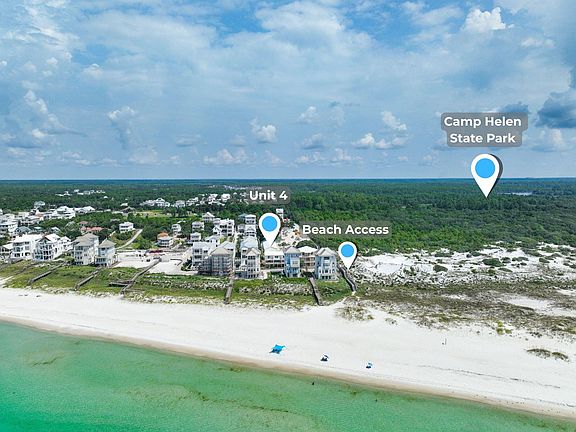 Inlet Beach SOUTH OF 98! Gulf views and fantastic beach access! Biking distance to Rosemary Beach. Sold fully furnished. And yes--it's a corner unit! Welcome to Shoreline Townhouses Unit 4, a rare opportunity to own a coastal retreat that blends location, outdoor living, and comfort in one.Being the corner unit means you get more than just the standard setup. Along with the two patios found in every townhouse, this home offers an additional open deck with partial cover--creating over 300 square feet of outdoor living space. Imagine grilling out, entertaining friends, or simply unwinding with the backdrop of Camp Helen State Park's rolling dunes.Practicality is built in too. Covered parking easily fits one vehicle, with additional outdoor storage for all your beach gear. After a day on the sand or at nearby Phillips Inlet, rinse off in your private outdoor shower before heading inside. Phillips Inlet is a local favorite for launching kayaks, paddleboards, or even a small boatmaking adventure part of your everyday lifestyle.