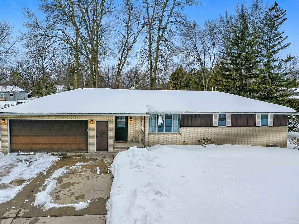 This beautiful brick ranch home is only walking distance from downtown, parks, and schools. Plan get togethers in the open kitchen and dining room and relax in the Whirlpool tub off the finished basement. Sip on coffee while overlooking the playset in your partially fenced yard, then wonder past the fence to the creek at the edge of the property. This home offers plenty of storage in the extra deep garage and shed. Per seller: Property line is approx. 3 feet beyond the fence in the back.