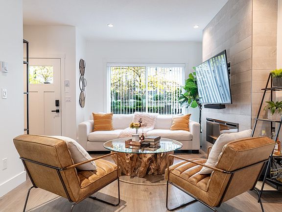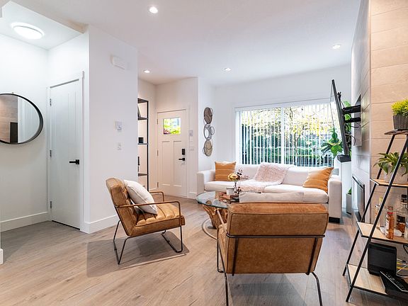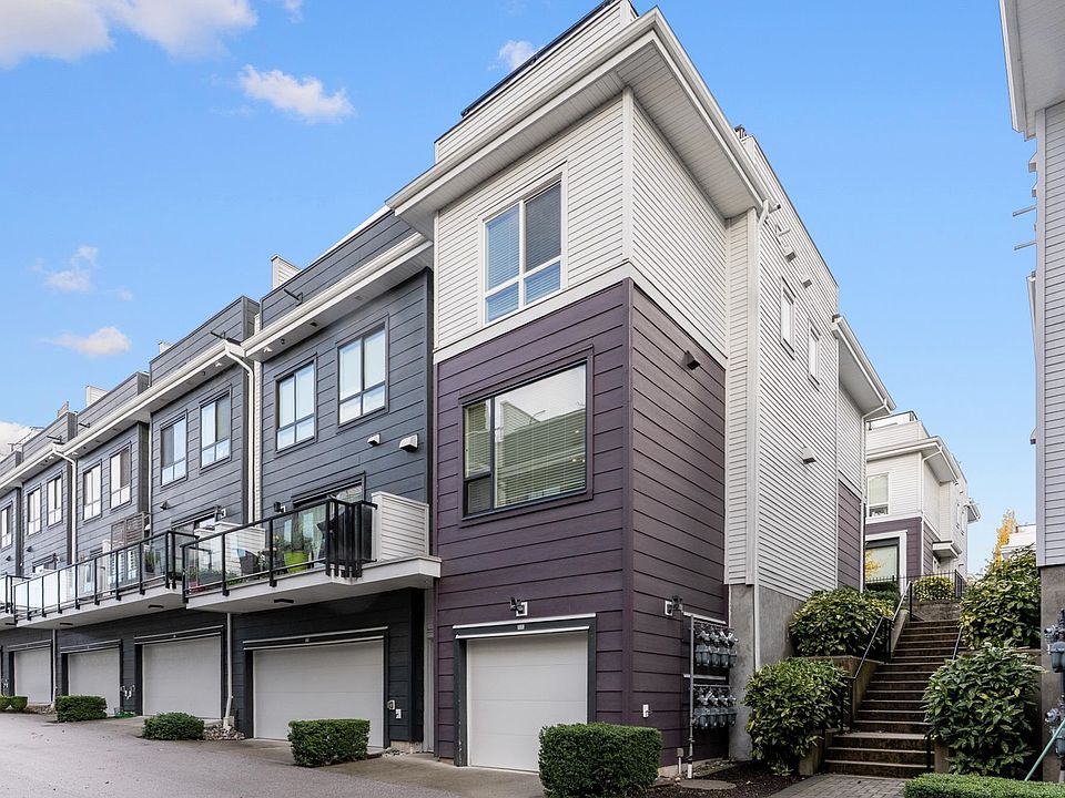 Welcome to Soho by Zenterra! This beautifully kept corner-unit townhome offers a bright, open layout with two spacious bedrooms, each with its own ensuite. Enjoy the 500 sq/ft rooftop patio, perfect for entertaining, BBQs, or watching the sunset. Recent updates include fresh paint, new washer/dryer, hardwood stairs, and epoxy garage flooring. Additional highlights include hot water on demand, a Tesla EV charger, and a spacious double-tandem garage with plenty of storage. Amenities feature a fully equipped gym, lounge, playground, kids’ playroom, 2 kitchens & large patio. Ideally located within walking distance to Superstore, Walmart, Grandview Aquatic Centre, restaurants, and more! Experience modern comfort and unbeatable convenience in one of South Surrey’s most sought-after communities!