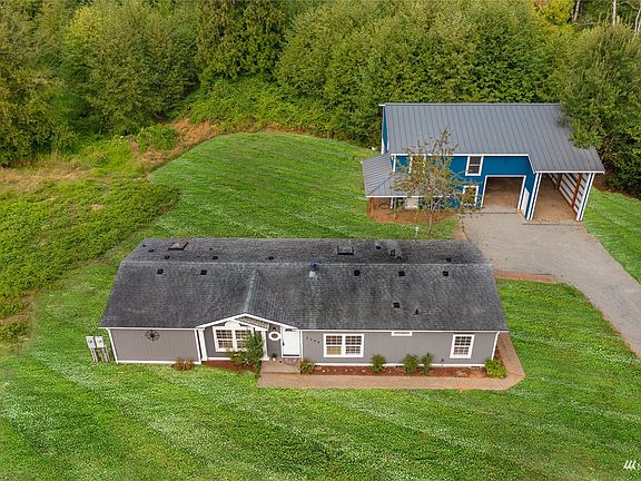 Great opportunity to own an updated manufactured home with a large shop just shy of 5 acres! Tastefully updated with luxury vinyl plank flooring, new carpet and interior & exterior paint. Enjoy a morning coffee or having barbecues on the beautiful new deck overlooking the grounds. This 3 bedroom, 2 bathroom home also has a separate living room, family room and dining area. Nice and bright kitchen with skylights and solid wood cabinets. Large bathroom and walk-in closet off the master suite. The shop was built in 2011 with the possibility of adding an apartment. You could have a hobby farm or even a detached mother-in-law suite. Love the peace and quiet of feeling tucked away yet only minutes to town! This is the one you've been waiting for!