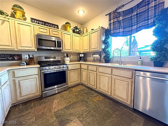 SOLAR. POOL. GATED. UPDATED. A truly special find in the Sunridge area of Henderson. Clean and cared for home has premier updates and upgrades throughout. Fantastic living area with fireplace on the ground floor with eating area and regal kitchen. Upstairs is the second living room. New plank flooring and elegant baseboards up. Check out the hall bath and primary bath updates! Super cool and thei primary shower is a showstopper. Awesome view from the rear bedrooms of the Strip and western mountains. Awesome backyard living with grilling area, covered living area, and pool/spa with plants and foliage completing the setting.