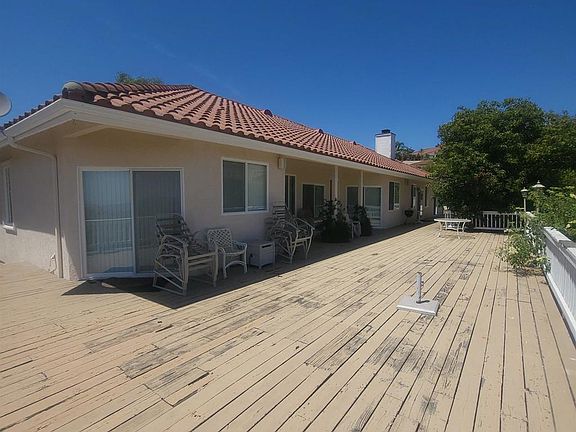 SPACIOUS SINGLE LEVEL HOME WITH PANORAMIC VIEWS IN SOUGHT-AFTER GATED CHAMPAGNE CREST! WITH 1.48 ACRES, ATTACHED 3-CAR FINISHED GARAGE PLUS DETACHED 2-CAR GARAGE WITH 3/4 BATH. LARGE VIEW DECK FOR RELAXING AND ENJOYING THE COUNTRYSIDE VIEWS. LARGE EAT-IN KITCHEN WITH CENTER ISLAND PLUS LARGE FORMAL DINING ROOM, PANTRY AND GRANITE COUNTER TOPS. FAMILY ROOM WITH FIREPLACE, MANY BUILTINS, SURROUND SOUND,VAULTED CEILINGS THROUGHOUT. PRIMARY STE. WITH TWO WALKINS, TWO LAVS, HUGE SPA TUB, BIDET, SPLIT FLOOR PLAN GREAT FOR GENERATIONAL LIVING, LARGE LAUNDRY ROOM WITH SINK, SKYLIGHTS, THIS IS A DIAMOND IN THE ROUGH! ADD AVOCADOS, FAMILY FRUIT, VIEW GAZEBO, HUGE ENTERTAINMENT DECK,( NEEDS WORK) WON'T LAST!!
