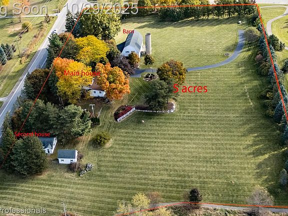For the FIRST TIME EVER on the market—and lovingly passed down through generations—this remarkable farmhouse offers the perfect blend of timeless charm/character and modern luxury. Situated on 5 picturesque acres, the property includes a spacious BARN with ample storage space and room for a workshop/flex space, a former creamery ( could be a chicken coop), and a SECOND HOME complete with 2 bedrooms, 1 full bath/ living room/kitchen/ laundry room/ garage and seperate driveway, that’s ideal for an in-law suite or a potential rental for added income and peace of mind. It doesn't stop there......