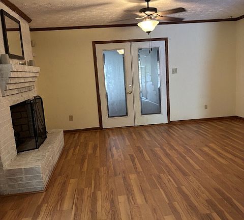 Living/Dining combo with wood-burning fireplace and brand-new LVP flooring