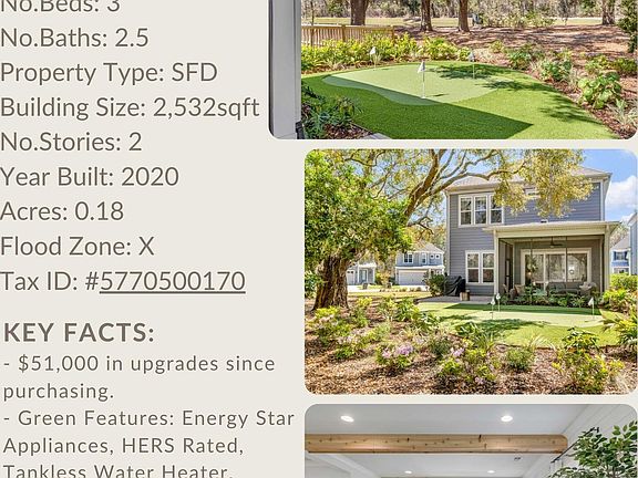 Priced well below the average price per sqft for this area, the quality and location of this turn-key Mount Pleasant home is truly unbeatable! At 2280 Primus Road, you're just an 8-minute drive to the beach, 14-minute drive to Downtown Charleston, and 4-minute drive to the Shops at Towne Centre. Built in 2020 with over 50k in upgrades since purchasing, this 2,532sqft home boasts exquisite craftsmanship and embodies Lowcountry living at it's finest. The property is situated on one of the largest corner lots in the neighborhood. The backyard is home to a beautiful grand oak tree, custom putting green and turf, new patio with a grill/firepit area and a screen porch - all overlooking one of the neighborhood ponds and walking trails. Oh, and the sunsetsare TO DIE FOR. When you enter the front door, you are greeted by soaring ceilings in the foyer, a large storage closet under the stairs on your left, and a massive living room and kitchen to follow. We love a big kitchen island that acts as the main gathering area! Enjoy hosting all of your friends and family in this spacious kitchen. You will love the custom "drop zone" tucked away beside the door to the garage, as well as the convenience of the adorable powder room. Upstairs you will find a great size laundry room, 2 guest rooms, huge closets, full hallway bath, and stunning primary bedroom overlooking the backyard. Storage isn't an issue at this house - there is more than plenty of it! HOA is $400/quarterly.