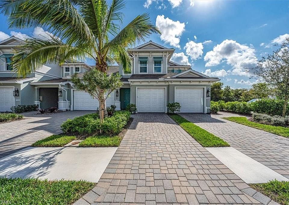Meticulously maintained luxury carriage home located on the 2nd level. Amazing 2/2+Den “Windemere Model” is move-in ready, & the furniture is negotiable. Charming coach home features a 1-car garage, luxury vinyl plank, upgraded white cabinets (kitchen & laundry room), quartz countertops, stainless steel appliances, a large kitchen pantry & plantation shutters throughout. A spacious Master Bedroom with a stunning walk-in California closet, ample shower, & dual sinks. A private, expansive screened lanai overlooks the landscape area. Additional upgrades include upgraded custom lighting, fans in all rooms including the lanai, sunshades in the lanai, surge protector (whole house), hot water circulator & the garage wired for EV (220 50V). NEAL smart home features, a Z-wave technology thermostat, HD video doorbell, smart entry door deadbolt, smart garage opener, smart hub to connect Z-wave devise, & structured wiring system to include five (5) cat 6 phones/data outlets. Richmond Park a NO CDD, gated community with only 104 beautiful homes. A private resort-style swimming pool & clubhouse. Excellent location near hospitals, restaurants, grocery stores, gas stations, & more.