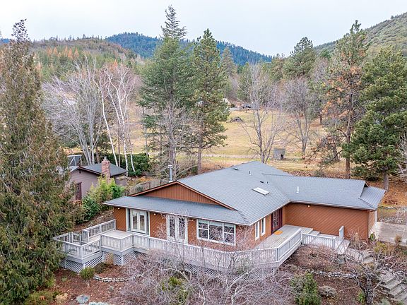 Custom home located in the Green Meadows subdivision on a large corner lot with mountain views surrounded by greenway, two acre private-park & hiking trails. This single level home with 750 SF of Trex style deck space features privacy in a serene setting. Living area is bathed in natural light starting with the entry sky-lighted vestibule & long vertical glass and French doors. Your large living room offers a fantastic mountain view & plenty of space for family & friends. The kitchen has plenty of working space, a breakfast bar & nook. Living room, formal dining room & 2 bedrooms have new carpet. Primary bedroom comes with bamboo flooring, French doors that lead to your secluded backyard & a walk-in shower with slate tiling. Enjoy your garden and backyard with two seating areas. One under an open covered skylight patio and the other an open space deck where you can bask in the sun, enjoy your morning coffee, or watch the evening stars. Let's not forget summer water irrigation rights.