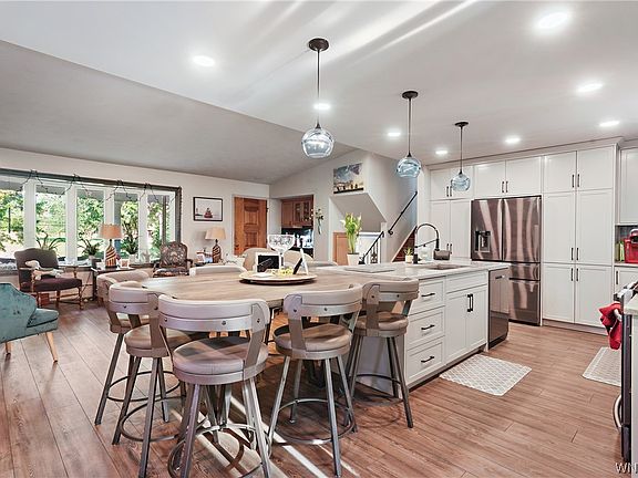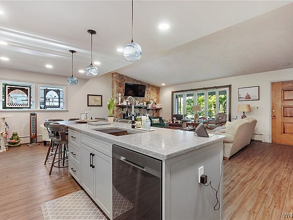 Grand Island 4 bedroom home sitting on 2.9 acre lot! Just shy of 2,000 square feet of living space with attached two car double-door garage. Long double wide driveway. New roof approx 4 years young. Front concrete porch with cover for relaxing. The inside features large updated kitchen and open concept! Large kitchen island with built in breakfast bar/table! 1st floor laundry and partially finished basement. Hot Water tank new in 2022. Main bedroom with full bathroom! Stunning backyard with large patio and deck. Deep 1302 foot lot. Offers will be reviewed 7/31 after 11:00am.
