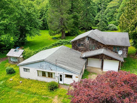 Park like setting with 2 adjoining homes on 11.2 acres of land near Miami-Foley Creek. Original home with lower level living 1,180 sq ft. 2 bd 1 bath. Tall double garage with 2 bd 1 bath above for additional 1, 368 sq ft of livable space to spread out. Newer roof. Home sits on 1.7 acres of flat meadow land. RV multiple entrance. Room for accessory buildings. Spring water rights included. 9.5 acres of 60 year old harvestable timber recently cruised at 306,000 MBF on site. Seller to pay Buyer closing costs with full price offer.