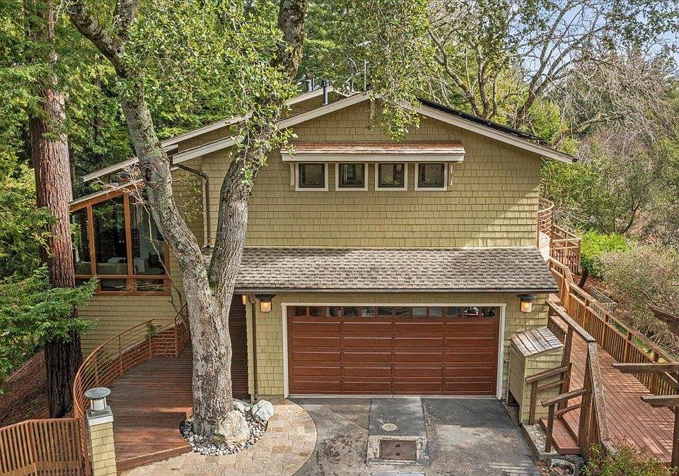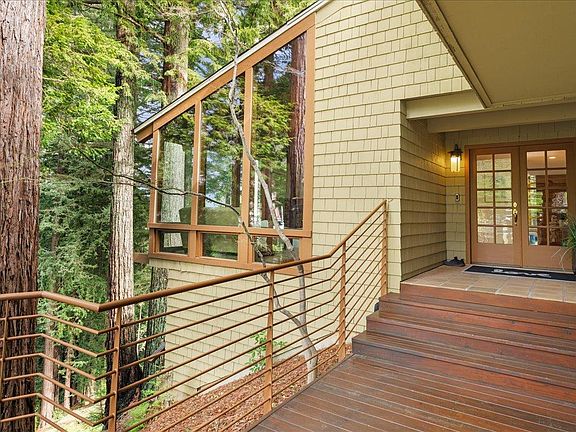 300K improvement. This gated Riva Ridge estate offers a stunning retreat with a peek of ocean view! The grand residence boasts a spacious open kitchen and family room, highlighted by an inviting island and breakfast bar. A sliding door leads to a deck, seamlessly connecting indoor & outdoor living, while the family room features a cozy fireplace, perfect for relaxation. The living room is designed to impress, showcasing soaring wood ceilings that enhance the sense of space and allow for natural light, along with picturesque views of the surrounding natural landscaping and trees. A step-down conversation area provides a perfect spot for intimate gatherings. Off the entry is a built-in bar/ lounge with walls of windows. The luxurious primary suite is a true haven, featuring two walk-in closets & large bathroom equipped with a tub and a stall shower. A slider off the primary suite leads to a private deck, ideal for enjoying morning coffee or evening sunsets. On the same level, you'll find two additional bedrooms, ample space for family or guests, and an open loft office/bedroom. Below the home sits a pool surrounded by trees and nature in a private setting. There's owned solar, 2 Tesla wall batteries & a Generac home generator. Short drive to downtown Los Gatos.
