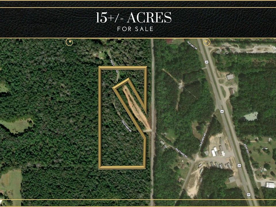 PRICE REDUCED from $175,000 to $150,000!!!!! 15+/-Acres just off of US Highway 49. Zoned A-1, General Agriculture. Poleyard Rd. runs all the way through, making it a potential site for subdivided lots, a small subdivision for spec homes, a mobile home community, or just a large single family residence with ample land for privacy! Just off US Highway 49, this location is very centrally located to all 6 Coastal Counties, making for easy commute. Less than one mile from the new Harrison County Development Commission's Industrial Park. 20 minutes to Interstate 10 and only 30 minutes to Gulfport Beach. Owner Financing available: - 20% Down, 5% Interest Amortized over 10yr