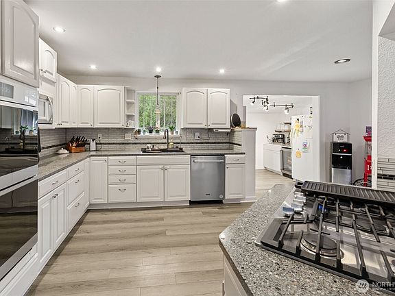 Lovely Rambler on just over 2+ acres in a peaceful, park-like setting with no HOA! This beautifully updated 3-bedroom, 2-bath home features an open floor plan, new LVP flooring, fresh interior & exterior paint, new furnace & AC, and a modern kitchen with quartz countertops, double oven and new stainless-steel appliances. The primary suite includes an updated ¾ bath. Enjoy the cozy family room with fireplace and a fantastic recreation room complete with hot tub and indoor swim spa—both stay! Outside offers an oversized 2-car garage, covered RV parking with 30-amp service, a pool, and ample extra parking. Close to schools and shopping—privacy and convenience await!