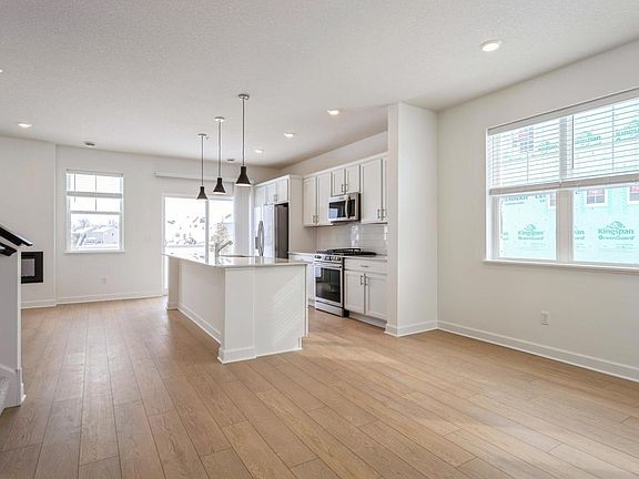 This townhome boasts of 2 stories and an open main floor. Head inside through the front door or through the garage entry.
