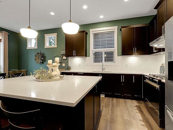 Immaculate executive home with over 3,000 sqft on three levels, suite potential, double garage, and a private yard backing onto greenbelt. Ideally perched on a cul-de-sac beside Nelson Peak Park. Quality-built by Portrait Homes with warranty to 2027. Features a fully finished basement with separate entry and suite rough-ins. Main level offers a double-height foyer, open concept living, over height ceilings, chef’s kitchen with premium appliances, large island, stone counters, gas FP, laminate floors, laundry room, and central vac. Upstairs has 3 spacious bedrooms plus an office/den (optional 4th bed), including a large primary with walk-in closet and spa-like ensuite. Basement includes a rec room, a bedroom, full bath, W/D rough-ins, storage, and driveway parking. A must see!