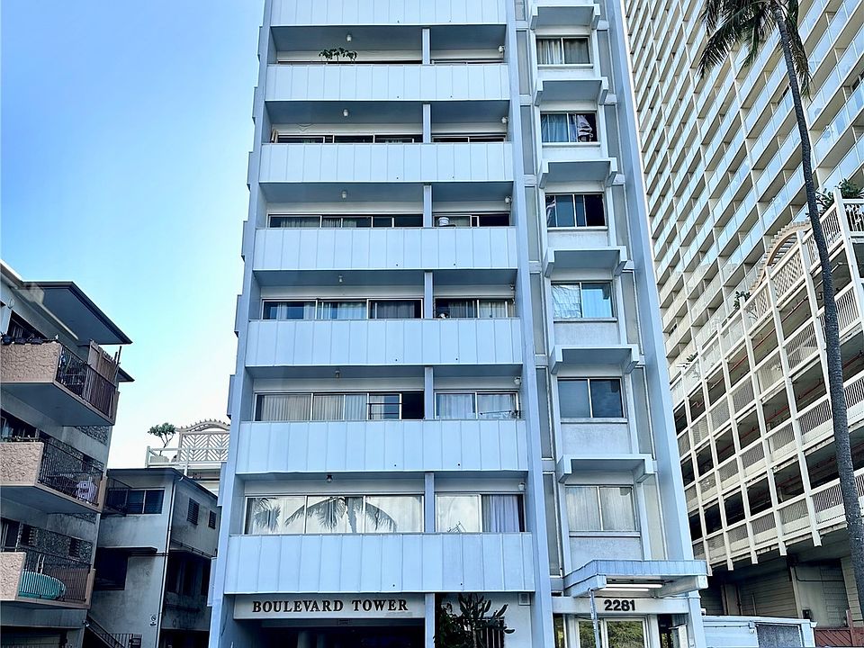 Boulevard Tower is a nice and cozy boutique building located in the heart of Waikiki. This 1 bed 1 bath unit boasts beautiful mountain and city views and overlooks the Ala Wai Golf Course. The kitchen features granite countertops, wood cabinets and easy to maintain tile flooring. Great location just a couple blocks away from the International Market Place that is home to many fantastic places to eat and offers a wide array of shops. Also just a few blocks away from the beautiful and famous Waikiki beach where you can surf, swim, lounge and enjoy other outdoor activities. Ala Moana Shopping Center, Ala Moana Beach Park, Kapiolani Park, Honolulu Zoo and Waikiki Aquarium are all just over a mile away. Great investment opportunity. 30 day rentals are allowed (verify). Pet friendly (verify). Maintenance fee includes $149.65 reserve assessment and $35.22 special assessment for the completed elevator modernization work. Special Assessment payments end in December 2028. Other fees include $60 AC charge. Sold "as is".