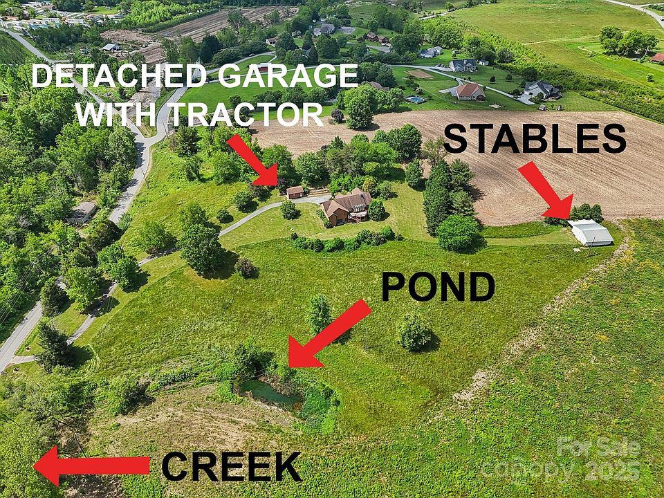 Welcome to your dream homestead with sunset vistas and pastoral beauty in every direction! Panoramic mountain views, creek frontage, a pond, & nearly 20 acres of possibility! This rare gem offers rolling green pasture, perfect for farmers, horse lovers, or anyone craving serene country living. Inside, enjoy the ease of one-level living with abundant natural light and views framing the majestic landscape from nearly every room! The home boasts a spacious layout, including a huge basement with endless potential—workshop, storage, studio, or expanded living space. Equestrians and hobby farmers will appreciate the 6-stall barn and 3 garages, with plenty of room for horses, livestock, and storage! Whether you're looking to create a working farm, a peaceful retreat, or a legacy property, this estate is a rare find that checks all the boxes. Don't miss this slice of Appalachian heaven where the sunsets are unforgettable, and the opportunities are endless!