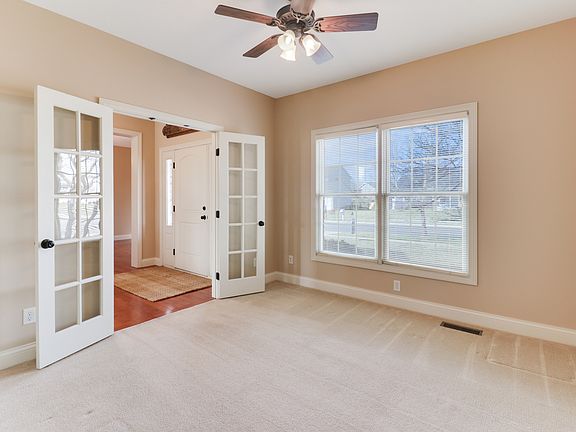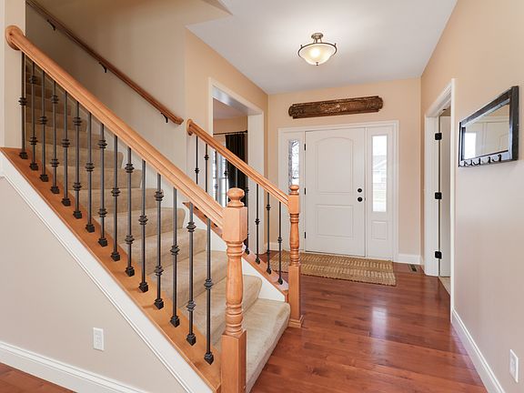 Custom, one owner home with walkout lower level & no backyard neighbors! Gorgeous floor plan showcases hardwood flooring, bright family room with stone fireplace & floating mantle, a dedicated dining room & a separate office with glass french doors. Spacious kitchen features upgraded cabinetry, granite counters, stainless appliances, a nice island with breakfast bar & a large walk-in pantry. Main floor laundry/mudroom off back hallway is a dream...with window over a sink, tons of cabinetry, countertop space & tile flooring. Generously sized bedrooms, including enormous primary featuring cathedral ceilings, plantation shutters & huge dual walk-in closets. Private bath has dual vanity with granite top, large tiled shower with multiple shower heads & cute built-in shelving. One of a kind, walk-out basement boasts a stunning wet bar area with amazing live edge & concrete bar top, handcrafted floating shelves, & stained concrete floors. You'll also find a tailor-made bookcase with a secret... a secret spot in the bookcase reveals an entire bonus room! The perfect family room offers just the right mix of cozy with stone accents & rich built-ins, but brings in natural light from daylight windows. Don't miss the full bath...with tiled shower, upgraded vanity & stool...& a bonus (very classy) urinal! Walk out of the sliding doors to the fantastic yard complete with brick paver patio with stone seating walls & firepit. Covered patio space on lower level & a deck spanning the upper level. Professional landscaping. No backyard neighbors & near Constitution Trail. Oversized 2-car garage w/extra 4ft on each side plus extended tandem area.