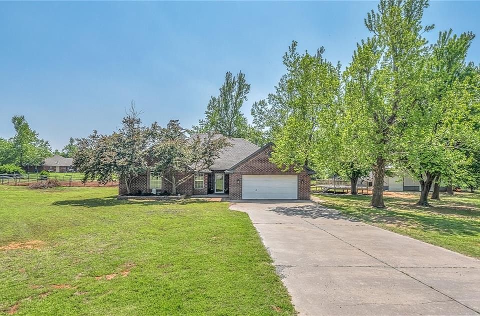 Nested quietly on a cul-da-sac in the Bridge Creek School District. You will find this 2058 sq. ft. home. Featuring 3 bedroom, 2 bath on 2 (MOL) acres. 30 X 50 shop and a riding area that can be removed. Open concept, gas log fireplace, Roof and decking replaced 2021. In 2022 the hot water tank was replaced, Luxury Vinyl Flooring installed in the Living room, hallway and bedrooms, interior and exterior painting also. The master bedroom has double vanities and his and her walk in closets. The first bedroom has vaulted ceiling and the 3rd bedroom has a unique barn stall design with barn wood walls and a barn door closet. Perfect for any little cowboy or cowgirl to wake up to just before hitting the 90 X 175 riding area. The shop has concrete floor, insulated walls and ceiling and 12 X 12 horse stall, two 10 X 10 overhead doors and a walk through door. There is a covered back patio overlooking an abundance of mature trees. Minutes away from Bridge Creek Schools and the Turnpike.