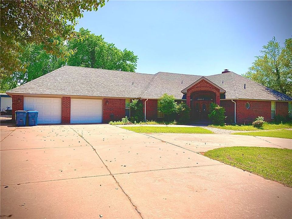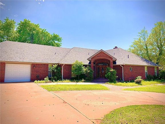Spread out and relax in this spacious home on a quiet cul-de-sac. Beautiful 2 acres of soaring mature trees, this home features 2 living rooms, 3 full baths and 2 dining rooms. West facing covered patio will enjoy endless Oklahoma sunsets. Smart outdoor space with fire pit, kids play house, extra storage buildings PLUS a 40x40 insulated shop with heat and cooled office. Full court basketball slab and covered RV parking. The pretty gate on the side of the house opens to paved area for your big toy storage or outdoor work space. Located in a beautiful established neighborhood. More pictures of the inside coming soon.