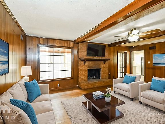 Wood fireplaceElegant brick claddingLush front yardFull suite of appliancesNicely-sized bedroomsAmple white cabinetryPlenty of closet space