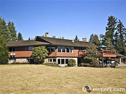 Single Family Home for sale by owner in Buckley, WA 98321. Fly & Ride at the Flying H Ranch. 7 acre airpark estate. Northwest comtempory custom home. Original homesite selected by the developer of the park as the premier location. Panaramic views of Mt. Rainier. Runway frontage for excellent access. Partially fenced for horses and a 2 stall barn. 4900 sq. ft.Completely updated throughout. 4 bedrooms, 2 1/2 baths, 3 large stone fireplaces. Gourmet kitchen with granite and walk-in pantry with wine cooler. Huge rec. room with bar, new deck off family room for entertaining and view. 2 heat pumps. Craftsman style wood accents and clear cedar ceilings. Large airplane hangar with workshop. 4 car detached garage and storage building or second airplane hangar. Plus an additional attached outbuilding. They don't build them like this anymore. Lots of room for all the toys. Close to shopping and Lake Tapps. Drive golf balls from your front yard. Virtual tour http://www.virtuallyshow.com/MLS/14481 Drive in or fly in to
