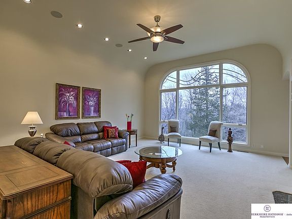 Beautiful custom executive w/o ranch. Loaded w/extras, sits on a 1.2 acre private treed lot and backs to the sanctuary w/trails to Elkhorn River. Stunning maple cabinets, extensive granite & marble, w/i pantry, SS appliances including warming oven & FP. Great room w/12 ft. ceiling & FP, spacious formal dining w/14 ft. ceilings. Master bath has heated marble flooring. This home is great for entertaining. LL has sunken tv room, lg wet bat & under flr heating.