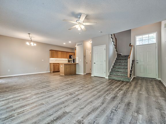 This beautifully updated townhome offers plenty of space and modern touches throughout. The main level features brand-new luxury vinyl flooring, an open floor plan with a bright living room filled with natural light, large windows, a cozy fireplace, and a convenient half bath. The dining area flows into the kitchen, complete with plenty of counter and cabinet space, a refrigerator, and a pantry. Just off the kitchen is a spacious two-car garage for easy access. Upstairs, you'll find three bedrooms, including a generous primary suite with a walk-in closet, double vanity, separate tub, and shower. The second level also includes a full hall bath and a laundry room for added convenience. All new carpet and flooring on this level as well. The finished lower level offers a large flexible space perfect for a family room, office, or playroom along with additional unfinished storage. Step outside to enjoy the backyard patio with a privacy divider. The HOA takes care of lawn care, trash, recycling, and snow removal, leaving you more time to enjoy the neighborhood parks and walking trails. Located within walking distance to the new Maranatha School and Horizon Elementary, and just minutes from shopping, dining, K-7, and Shawnee Mission Parkway this home combines comfort, convenience, and community.