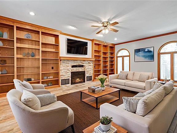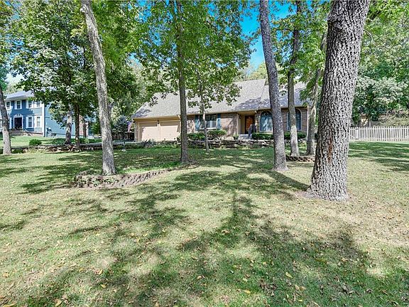 Welcome to This Picturesque and Private Retreat Home Tucked Away on a Quiet Cul-de-Sac in the Area's Most Enchanting Neighborhood - Canterbury Trails! This Serene Property is Treed and Beautifully Landscaped on a 1/2 Plus Acre Treed Lot Backing to Greenspace. Enjoy the Walking Trail From Your Own Private Gate at the Back of Your Yard! The Lush and Lovely HOA Greenspace Boasts Scenic Walking Trails and Multiple Stocked Ponds. This Meticulously Maintained Home Boasts Beautiful Hardwood and Tile Flooring and a Myriad of Updates! The Cozy Great Room Features Built-In Shelving, Updated Stacked Stone Fireplace and Tile Flooring. The Light Filled Sunroom/Family Room was added By Owners in 2002 & Showcases a Stunning Vaulted Pine Wood Ceiling and 2nd Fireplace Along With Walls of Windows Overlooking The Beautifully Treed/ Landscaped Backyard. All Main Level Living w/ 2 Bedrooms and Laundry RM on 1st Floor. 2 Bedrooms Plus an Updated Full Bath on 2nd Floor and Finished Flex Room Plus Cedar Closet and Tons of Storage in the Lower Level. All Located in The Award Winning Blue Springs School District.