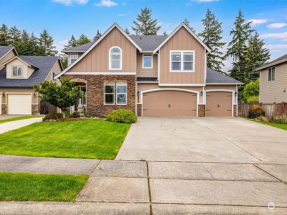 Price Improvement on this beautiful Grand Firs Home. Located in an established gated community in Graham. Warm & inviting describes this spacious Craftsman Style residence w/over 3,000sqft. Elegant wood details throughout, iron stair railing, granite countertops, new carpet & paint. Main level features 4 bed, 2.5 bath, office, formal dining & open concept kitchen & living area with AC. Upstairs you can find wide hallways, Lg bonus room, Primary bedroom, 3 additional bedrooms & Laundry. The home sits on a nice cul-de-sac & offers a 3 car garage, RV parking w/pad, parking for 6+ cars. Easy to maintain front yard, semi-private backyard w/sprinklers, Lg back patio, mature landscaping, fish pond, hot tub & garden areas. Home warranty included!