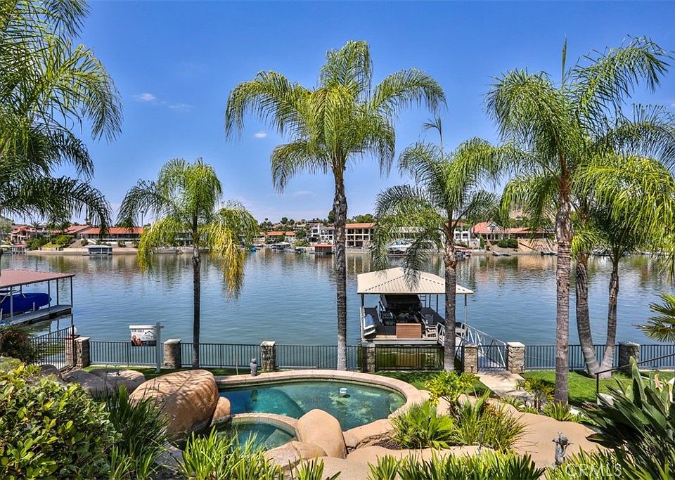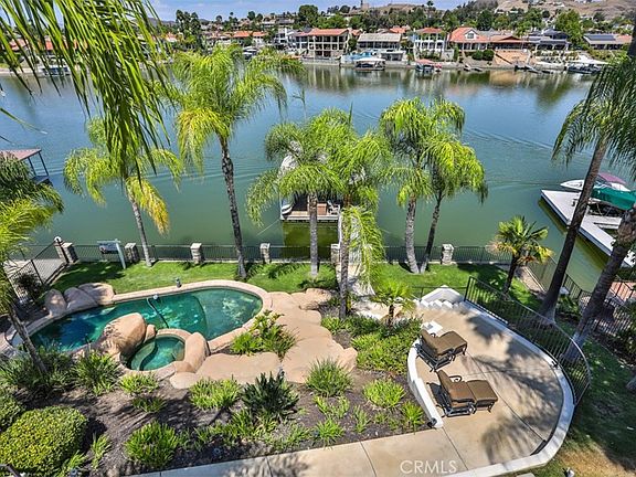 ***Welcome to your dream Lakefront Escape, where resort-style living meets timeless Mediterranean elegance*** Nestled in the exclusive guard-gated community of Canyon Lake, this stunning waterfront home offers nearly 4,500 square feet of beautifully designed living space, featuring 6 bedrooms, a spacious bonus room which could be a 7th bedroom , 3-car garage, and 80 feet of premium waterfront. Enjoy indoor-outdoor living with a private pool and spa, multiple balconies and decks, and your own dock with boat lift, that includes water and electricity—all set in a peaceful no-wake zone for maximum tranquility and perfect for the kids to go swimming right off the dock. Whether you're hosting friends or soaking in the view, this property is designed for unforgettable moments. Inside, the home offers exceptional flexibility and comfort. Main-level bedroom and full bath—ideal for guests or multi-generational living. Expansive master suite that has a sitting room with fireplace with direct access to waterfront balconies and a huge closet. Open-concept living areas featuring cozy two-way fireplaces, upgraded upstairs laundry room, dual-zone HVAC, and a whole house fan. Tons of storage including a two car garage on one side and an oversize one car garage on the other side. Property is fully furnished and ready to be lived in immediately which could sleep up to 16 people comfortably. Step outside and you're just steps from Roadrunner Park, complete with a beach and volleyball court—just one of the many recreational amenities that make Canyon Lake so special. Community Highlights Include Private lake access with boating, elite wakeboarding, and water sports, 18-hole golf course, tennis courts, pickleball courts, equestrian center, baseball fields, and 16 parks and beaches. This property is truly one of the best waterfronts in Canyon Lake on one of the best streets. Whether you're looking for a primary residence, a vacation haven, or a profitable rental opportunity, this is the one. Don't miss out on this amazing opportunity.