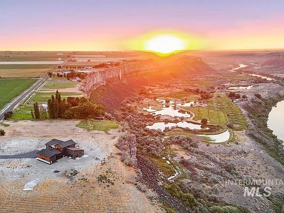 Experience luxury, serenity, & freedom on 1.92 acres with water shares, a 16x40 RV garage, & no CCRs. This stunning mountain modern home sits on the edge of the Snake River Canyon, offering breathtaking views & a sense of peace & serenity. Inside, custom wood details & whimsical modern lighting add warmth & charm, while the hardwood floors and three-sided stone-and-wood fireplace set a cozy yet elegant tone. The gourmet kitchen flows into the living room with canyon views, featuring a massive island, 5-burner gas range, custom shelving, & beautiful finishes throughout. Entertain with ease from the formal dining to the covered patio & second-level deck with showstopping views. The primary suite offers private patio access with hot tub hookups, & a spa inspired ensuite w/a stunning shower & soaking tub overlooking the canyon walls. Upstairs, enjoy a 2nd living area that opens up to the upper deck and flex space perfect for an office or gym, all designed to take full advantage of the epic canyon landscape. Need a shop? Builder can build it!