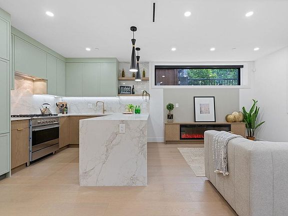 Stunning home in Grandview-Woodland, designed by award-winning ARCHITRIX with interiors by KD Interior Design. This 2 beds, 2 baths + den home features a spacious one-level layout, oak engineered floors, custom fluted millwork, built-in closets, and a cozy fireplace. Gourmet kitchen with Fisher & Paykel appliances, quartz counters, waterfall island, Riobel & Delta fixtures. Includes walk-in pantry/den, EV-ready storage shed, A/C heat pump, tiled patio, and pro landscaping. Steps to Commercial Dr, SkyTrain, Trout Lake & shops. Includes 1 parking, bike room, storage. Open House Sunday Sept 7, 2-4pm