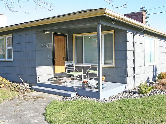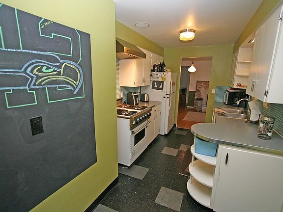 Renovated mid-century 3 BR/1 BA home, 1,392 sf on a sunny corner, fenced lot w/a deep 1-car garage w/workbench & storage room + outbuilding/potting shed. Period details intact: hardwood floors, built-In's, large picture windows & wood burning fireplace. Stylish kitchen w/a blue glass tile back splash & with a chef in mind a Viking range & hood + Bosch dishwasher. Luxury full bath w/beautiful black slate floors & cast iron tub w/tiled surround. Private fenced backyard w/raised beds.
