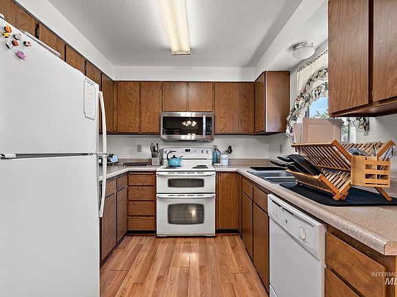 3-bedroom ranch on a spacious corner lot with 1 year old solar panels. NO HOA, and low property taxes! Electrical system upgraded in 2023, Nest smart thermostat, double oven and new microwave in kitchen, interior paint done 2024. Prime location near updated Tully Park, Barbara Morgan STEM Academy (½ mile), biking paths, and quick interstate access. Open floor plan with vaulted ceilings. East-facing backyard offers evening shade in summer, patio, vinyl fencing, two storage sheds, and wide side gate. Refrigerator, washer & dryer included with full-price offer. Welcome home!
