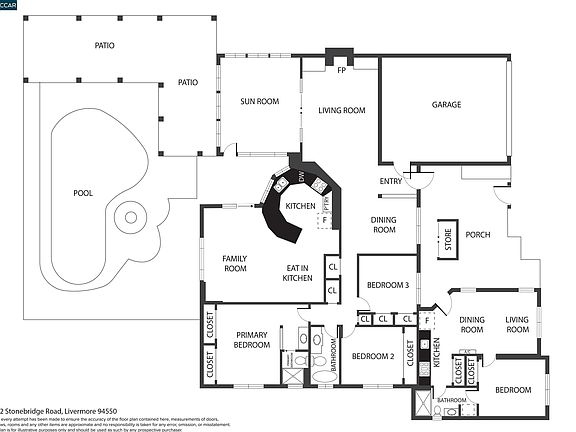 Welcome to your dream home in So. Livermore that checks every box for modern living and entertaining. Situated on a spacious 10,000 sq ft lot, this home boasts a newly constructed attached ADU offering a comfortable bedroom, a well-appointed bathroom, a fully equipped kitchen, laundry facilities, and a living area with ramp entry, providing seamless accessibility and passive income potential. Designed for both intimate gatherings and large-scale entertaining, the floorplan flows effortlessly. Step into the formal living area, which opens to a generously sized 16'x12' sunroom extra sq ftg - an ideal space for a home office or gym, flooded with natural light. You'll love the cozy formal dining area. The heart of the home lies in the updated eat-in kitchen, boasting freshly painted cabinetry, a convenient breakfast bar, & dining area that effortlessly transitions into the family room. A slider leads to the backyard oasis—a sprawling resort-style retreat featuring a sparkling pool and spa, as well as ample space for relaxation, recreation, and greenhouse gardening, creating the perfect sanctuary. Additional features incl. solar panels, Milgard dual pane windows, a durable tile roof, plantation shutters, generator, & EV chargers ensuring both comfort and energy efficiency. WOW!