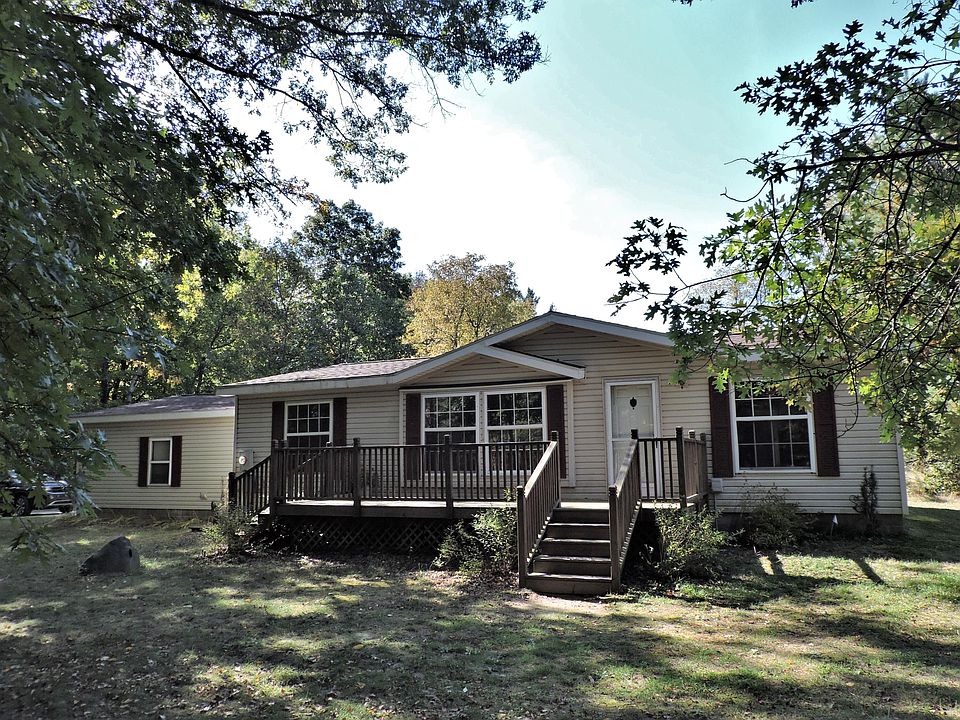 Very nice location and condition for this 3 BR, 2 Bath, 1993 Redwood double wide on 1 acre near Big Rapids. Features newer roof, front deck, two car garage, remodeled kitchen. Open floor plan. Quiet country setting.