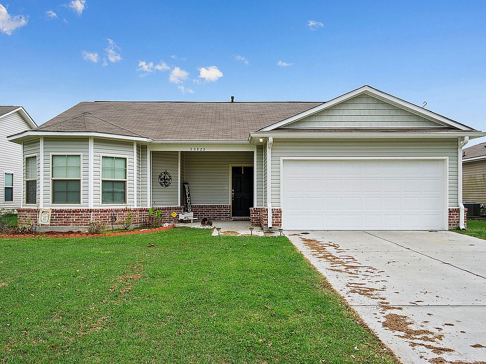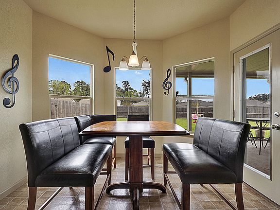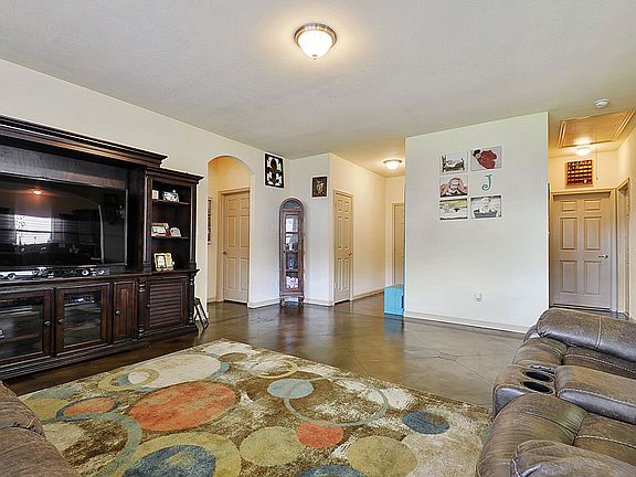 This home is only 3 YEARS OLD! The formal entryway opens into an expansive living area with large windows, adding tons of natural light and overlooking the large backyard. The living room opens into the kitchen and breakfast area through a beautiful archway. Home features beautiful stained concrete floors! Kitchen features tile counters, dark stained cabinets, a large island and a pantry. Master bedroom splits to one side with en suite bath, large walk-in closet, and huge linen closet. Additional bedrooms/second bathroom split to the other side of the house, which is great for kids or guests. This home also features a fully-fenced spacious backyard with covered patio, which allows for easy outdoor entertaining or just relaxing.