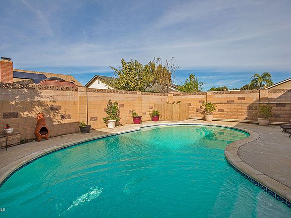 Amazing east Simi Valley New Monterey single story pool home. Very special and has been lovingly maintained. Features include 4 bedrooms, 2.5 bathrooms, 2,082 sq. ft. of living space, a 6500 sq. ft. lot, a double door entry, upgraded flooring including Italian porcelain tile and tumbled travertine, vaulted ceilings, ceiling fans, upgraded lighting, a living room with a brick fireplace and a built-in granite desk and wall bookshelf, a breakfast nook with custom pantry closets with roll-outs, a large granite island with a breakfast bar and pendant lighting, a dining room with a chandelier, an updated kitchen with stainless LG appliances including a 5-burner range and oven, a microwave and a dishwasher, a trey ceiling with recessed lighting and more...The kitchen also features upgraded Italian porcelain tile countertops, backsplash and under-cabinet lighting, a stainless sink with a view to the private backyard displaying a sparkling pool (just re-plastered) with solar heating, and a large covered patio with a fan and lights... a truly relaxing setting to spend your evenings and weekends! There is also a built-in attic/bonus room with recessed lighting. Other features include 3 secondary bedrooms with ceiling fans and bamboo flooring, a hall bathroom with a shower-over-tub, a spacious master bedroom with a walk-in closet, a vaulted ceiling, a vanity area and a separate room with a shower. Other attractive upgrades include bathroom whisper fans, full copper piping, a 4-year-old HVAC system with upgraded ducting, upgraded baseboards, an upgraded garbage disposal, storage and electrical outlets in the granite island, wired for ''SAFE'' alarm, extra storage closets, a 2-car garage with built-ins, workbench, laundry hookups and an upgraded sectional garage door and upgraded motor! Convenient east Simi location, close to award winning schools, parks, shopping, restaurants, and hiking trails.
