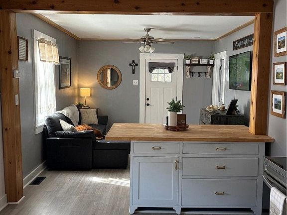 Welcome to this beautifully updated 2-bedroom home in Clarksville! Nearly every major system has been upgraded for worry-free living, including a newer roof, brand-new furnace, hot water tank, and updated electrical service. Step inside to an open-concept layout featuring new vinyl plank flooring, modern recessed lighting, and a stylish kitchen with butcher block countertops and a striking cedar beam accent. The bathroom has been fully remodeled with a tile shower and contemporary finishes. Enjoy outdoor living on the new 20x12 Trex composite deck with vinyl railings—perfect for entertaining or relaxing. With first-floor living, newer Samsung appliances, and fresh paint throughout, this home is truly move-in ready. Don’t miss this turnkey gem that blends comfort, efficiency, and style!