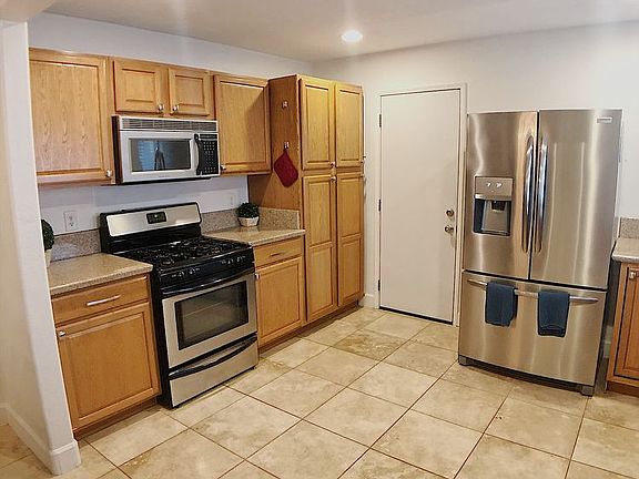 Spacious 2 bedroom 1.5 bath Townhome in Simi Valley. Completely remodeled with granite counters, tile floors, recessed lighting, new windows, and updated bathrooms. Open concept with high vaulted ceilings. Fireplace in living room with sliding glass door to backyard. Fenced backyard with artificial grass and patio cover. Single car attached garage. Refrigerator and washer/dryer pictured are not included. Centrally located near freeway and stores.