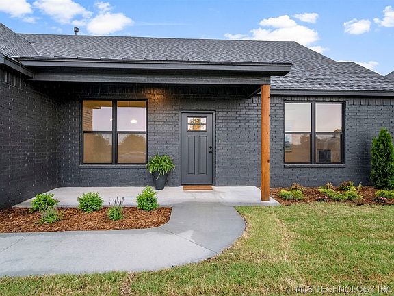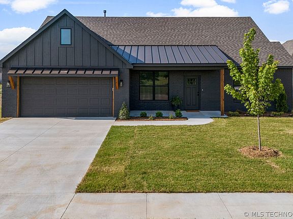 Trim Carpenter & Realtors "We Over Built" Custom Spec Home! Standing out with moody Iron Ore exterior & stained cedar accents. Enjoy the view out the front with a beautiful pond & roaming cattle. Real hardwoods throughout the home with an Office/Study w/full closet of shelving & space for router. Living Room with full brick gas fireplace to ceiling, space for conversation seating & Christmas tree! Dining Room with large picture window & open to main living space. Kitchen has maximum cabinetry & built-in pantry & full island w/outlets on both sides. Plenty of prep space, gas range, & coffee bar! Slow down and enjoy the view from the kitchen sink! Don't forget the large storage closet that can be used for your bulk products, children's play area, wine storage, or cleaning storage with an outlet for your robot vacuum! Hallway with linen closet, Guest Bath w/upper cabinet, & Two Guest Bedrooms on the back of the home for privacy. Primary bedroom with lots of natural lighting& large closet with two shoe cubbies! Primary bath with separate vanities & full tiled shower. Floor to ceiling mud bench/drop zone in laundry room off the garage with hanging space & cabinetry! You choose your hooks & we will install. Covered front & back patios! Coming Soon is Neighborhood pool & park! Broken Arrow Schools. Qualifies for USDA loan. Home is complete. Listing Agent is Builder/Owner & is Licensed Realtor in the State of Oklahoma. Vacant, go show.