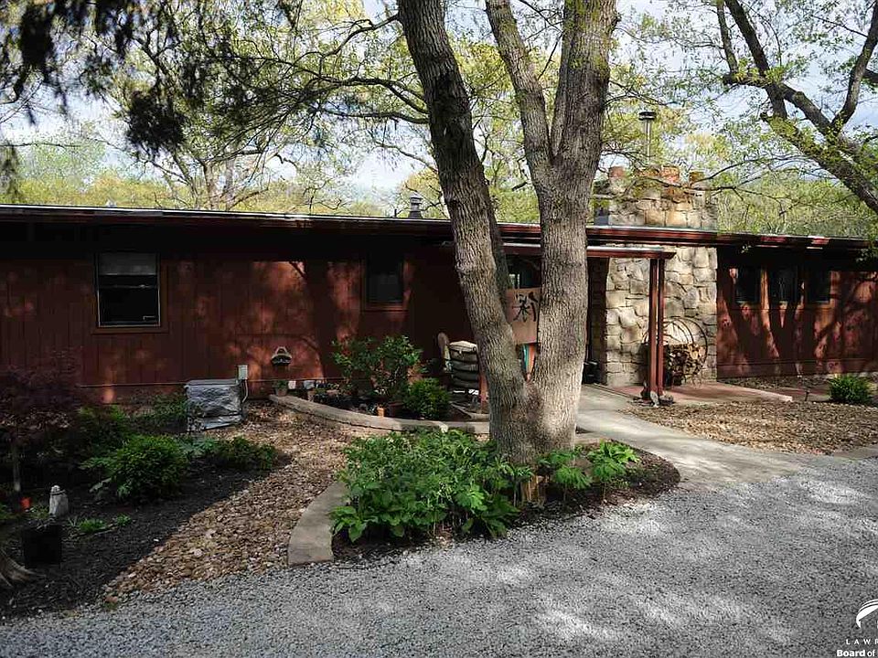 What a special place this is. Located near Tonganoxie on 9.8 acres it is an oasis of privacy coupled w/ nature. Constructed in 1973 by someone with "modern" tendencies this one level post & beam w/ a shed roof features an open floor plan w/ a full unfinished walk-out. The deck overlooks a forest & a huge pond full of fish & critters. Property could be divided into another parcel or you can just enjoy it all to yourself. This is the clearly the Best of Show and Best Value north of the Kaw. Who's Next?