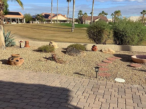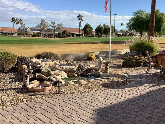 This home is located on Deer Valley golf course in Sun City West which is an age restricted 55 and over community. A front courtyard of the home offers a sitting area with a firepit. The home is furnished and has a large family room that provides plenty of space to relax or entertain. The kitchen and two and a half bathrooms have been updated with granite. The master bath features a walk-in shower and sunken tub, and has a large walk-in closet. The home offers an office with working areas for two individuals. The backyard features a large patio with a fountain and affords a great view. The backyard also features an enclosed barbeque grill.