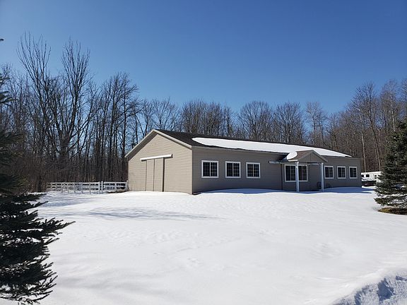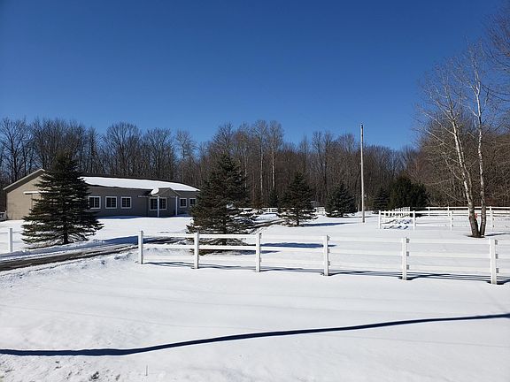 Attention horse lovers! Here is your opportunity to have your own place for your babies and not have to board them. Rarely are you able to find an indoor riding space at this price point. 5 box stalls with two more easily converted back, currently being used as tack area. Outside is 4 separate white vinyl fenced paddocks, 2 run-in shelters and a storage shed. A long winding picturesque drive leads back to the Stone faced home with attached two stall garage. Inside has been remodeled in tasteful decor and hard surfaces for animal friendly living. This quiet and secluded five acre setting is a peaceful retreat from busy city life and a place to enjoy country living!