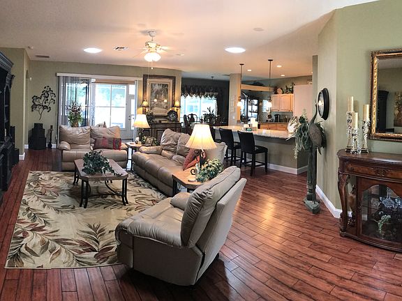If you are looking for a open floor plan, this is it!! You will see the openness as soon as you walk into the foyer through the beautiful glass front door. You will be able to imagine yourself entertaining from the beautifully remodeled kitchen that is open to the great room and dining area. The kitchen has beautiful granite counter tops, a large island and large open counter to the spacious dining area. The kitchen has also been loaded with upgraded appliances, and 18x18 tile floors that flow into the dining area. The great room features wood flooring, a wall large enough for most any entertainment center. It is also, wired for surround sound, has 3 solar tub skylights that bring in lots of natural light and triple slider doors that can be opened up for more entertaining space in the sun room. The master bath has been remodeled with dual vanities and walk-in shower. The guest bath was also recently remodeled. The laundry room features upgraded washer and dryer, lots of storage and even a drop down ironing board. This home also features 2 more bedrooms, one of which could also be used as a den or office, with it's double door entry. The garage features lots of storage and drop down screen garage door. All this, and a large screened in patio overlooking the gorgeous view, of the 7th hole of a Championship golf course. This community has so many activities such as golf, movies, dances, workout rooms, pools, tennis, clubs, etc. you will be glad the lawn maintenance is included in the HOA dues.